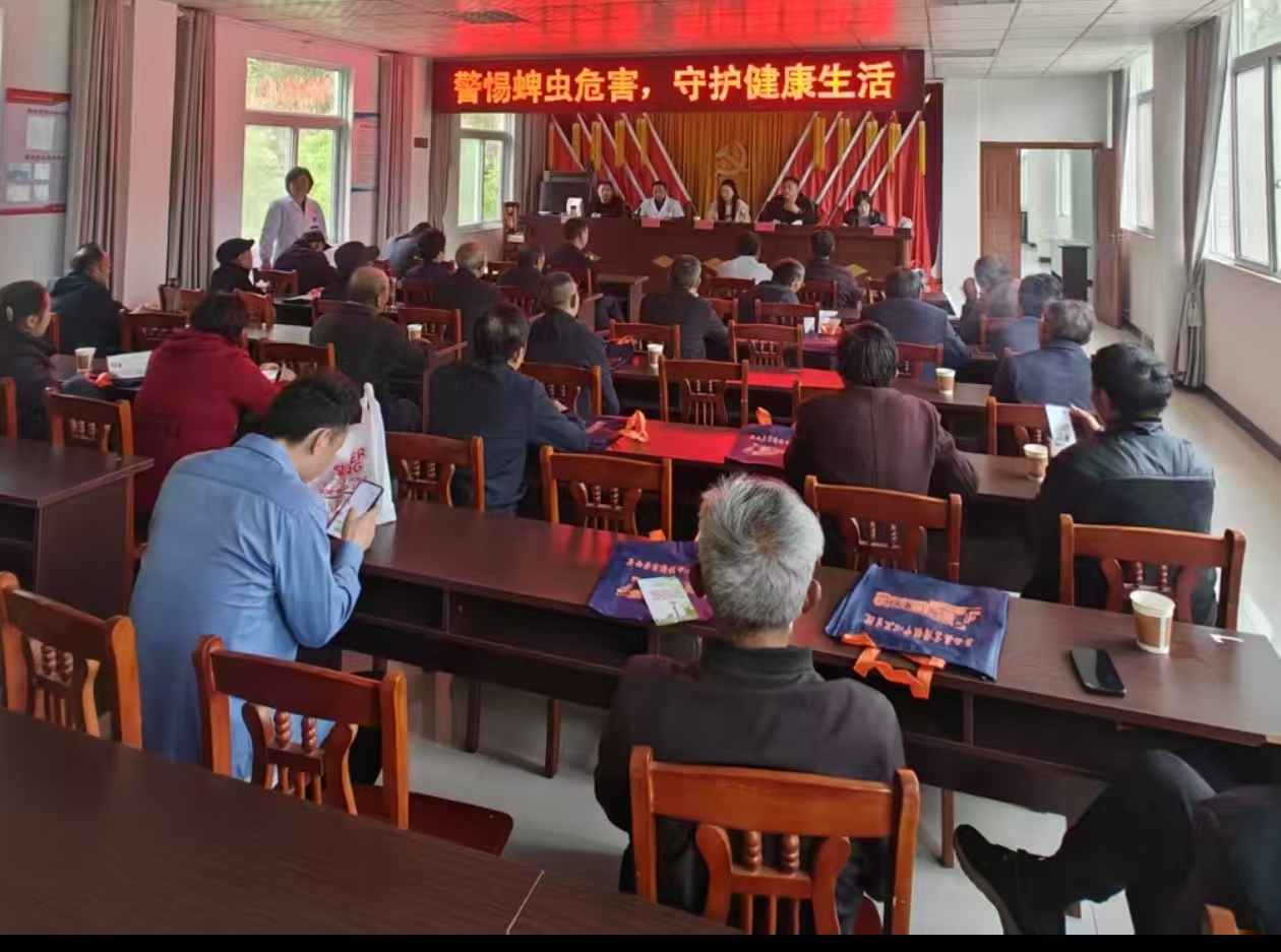 在各村村民代表大会现场,卫生院专题科普小组围绕蜱虫病防控核心知识展开讲解,重点聚焦蜱虫传播疾病的风险、日常预防措施及就医指征。同时,积极动员村民代表发挥“宣传员”“带头人”作用,鼓励其将科学防控知识传递给身边亲友、邻里,以“点带面、面扩片”的形式,构建全域覆盖的科普传播网络,让健康理念融入乡村日常。