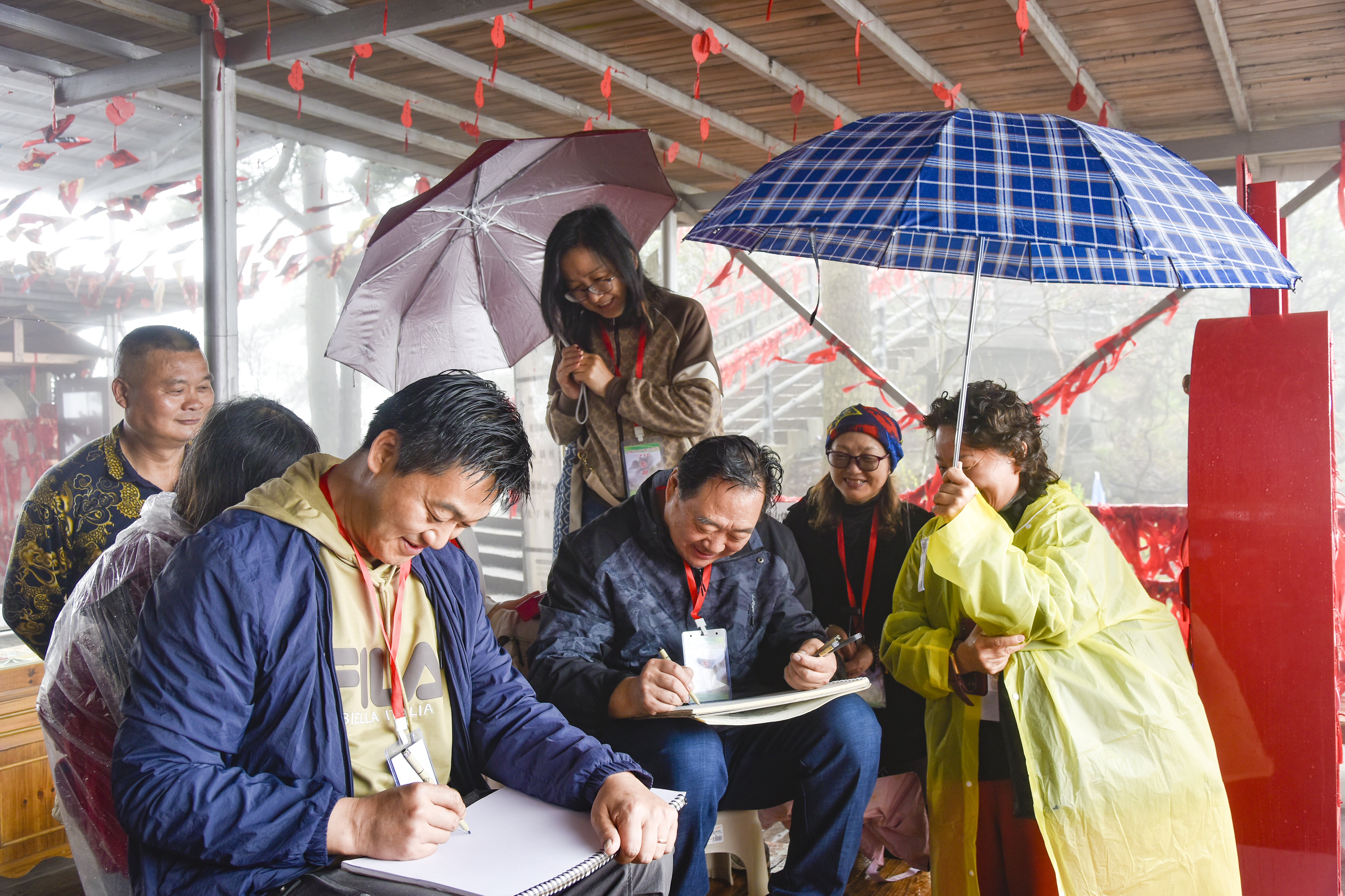 活动期间,两地艺术家先后走进天峡、明堂山两大景区,置身千亩杜鹃花海与青山云海之中,沉浸式感受大别山的生态禀赋与自然神韵。春日的岳西,峰峦叠翠、云雾缥缈、杜鹃竞放,处处皆画、步步成诗。艺术家们边走边看、边观边记,用镜头捕捉山水灵秀,用笔墨定格春日盛景,将岳西的雄奇山水、红色底蕴与民俗风情融入创作,挥毫泼墨间,诞生了一批意境悠远、气韵生动的山水作品,生动展现了大别山之美、映山红之艳,让自然之美与艺术之韵完美交融、相得益彰。