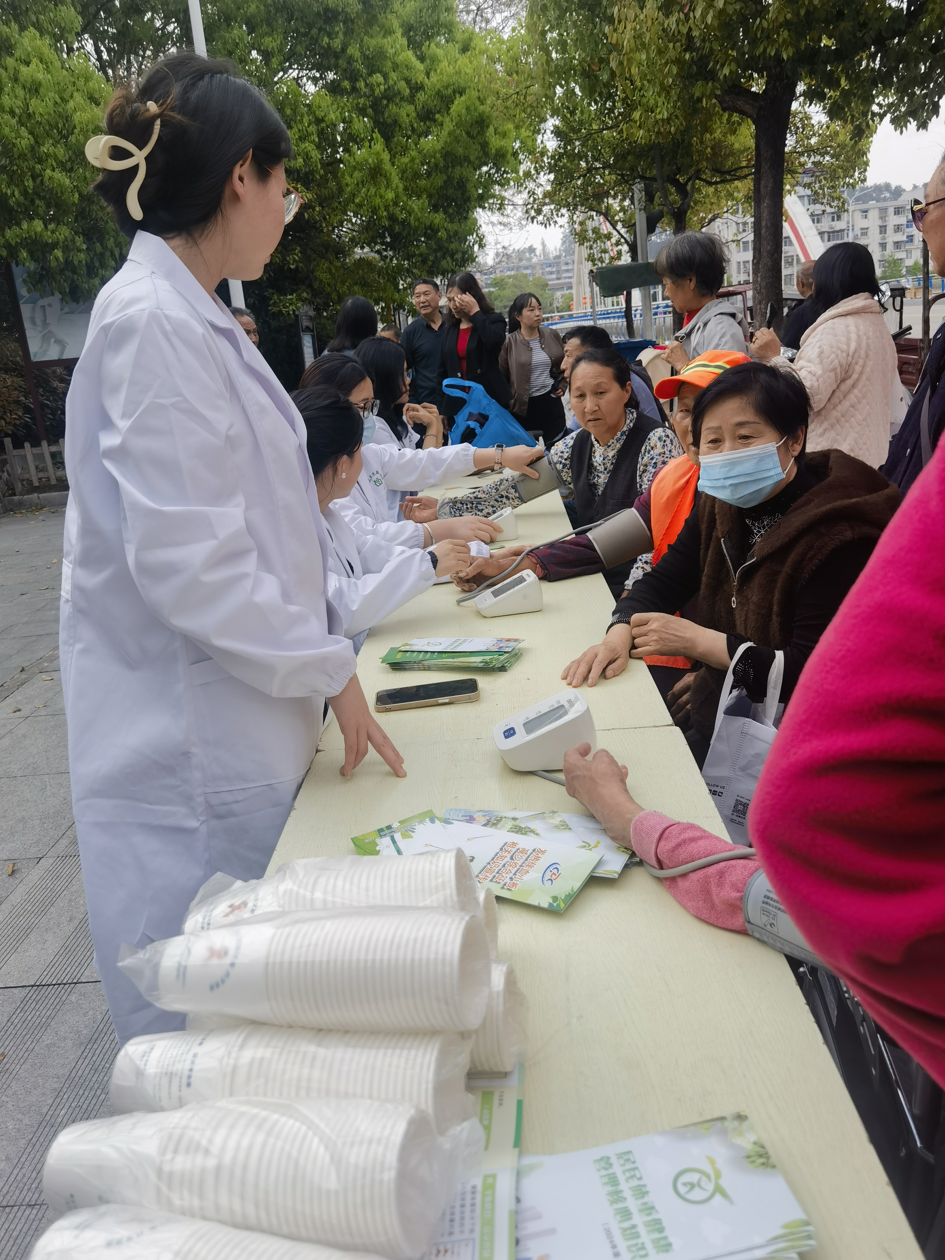 竹篙尖公园活动现场,工作人员悬挂主题横幅、摆放科普展板,为居民提供免费血压测量、健康咨询等便民服务。针对居民不同血压情况,医护人员耐心提供调整饮食、规律作息、及时到院复查等个性化建议;同时,结合当地居民日常饮食习惯,重点提醒群众少吃腌制、油炸食物,不食用霉变食物,多吃新鲜蔬菜水果,坚持戒烟限酒,保持适量运动和乐观心态,从日常生活细节入手降低患癌风险。