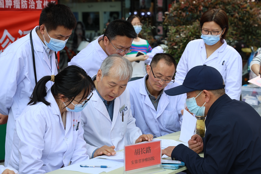 人群中,一位拿着体检报告、神色焦虑的中年女性,被引导到一位气质儒雅的专家面前。经介绍,这位专家正是安徽省立肿瘤医院肿瘤科主任医师、教授胡长路。