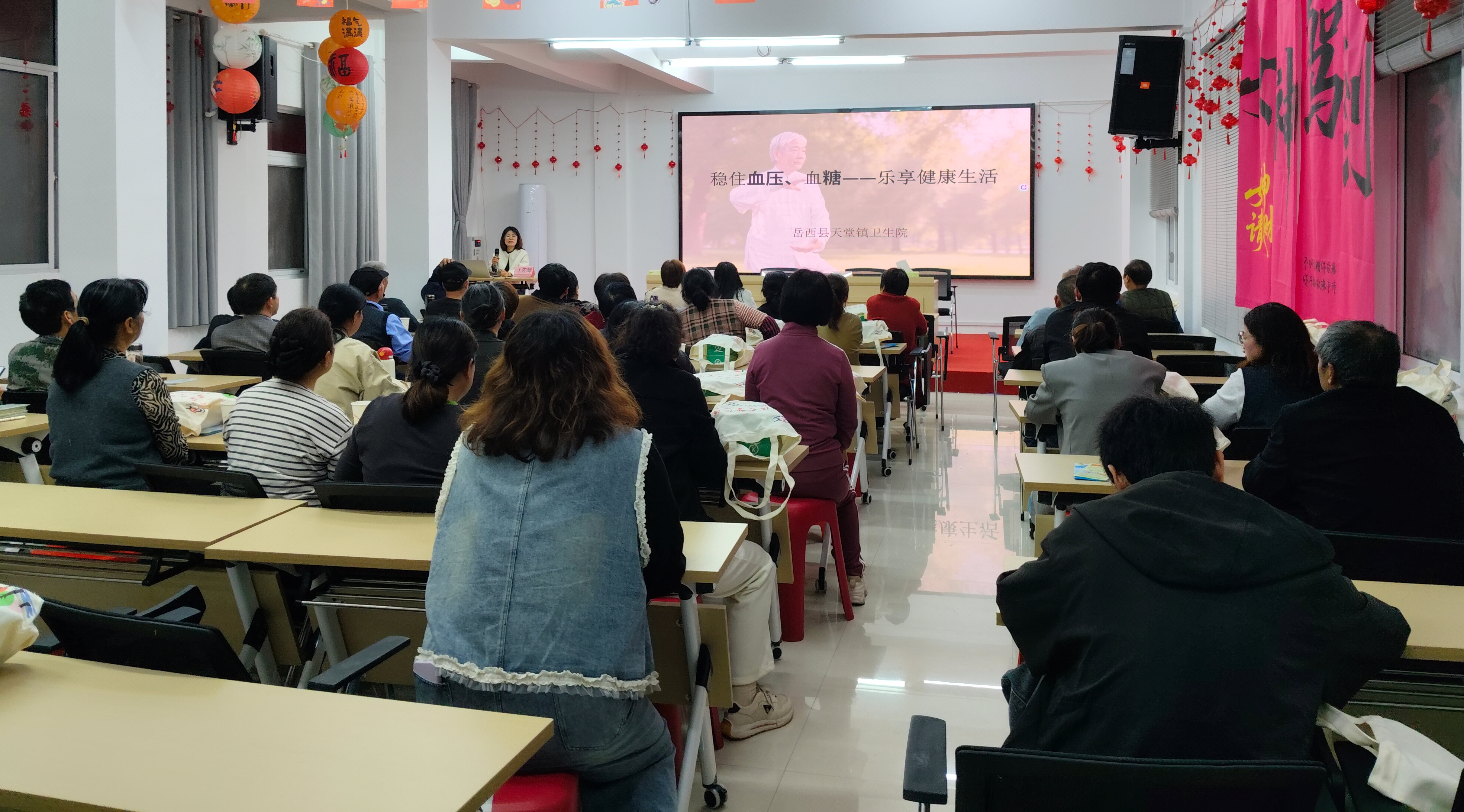 天堂镇卫生院医师结合辖区实际,详细解读了慢性病在当地的发病现状、高发人群分布,深入剖析了遗传、不良生活习惯、环境因素等高危诱因,明确指出了头晕、乏力、血压异常、血糖波动等慢性病早期信号,同时向居民普及预防知识,着重强调戒烟限酒、低盐低脂合理膳食、规律适度运动的重要性,提醒居民定期进行健康体检,做到早发现、早诊断、早干预,从源头降低慢性病发病风险。